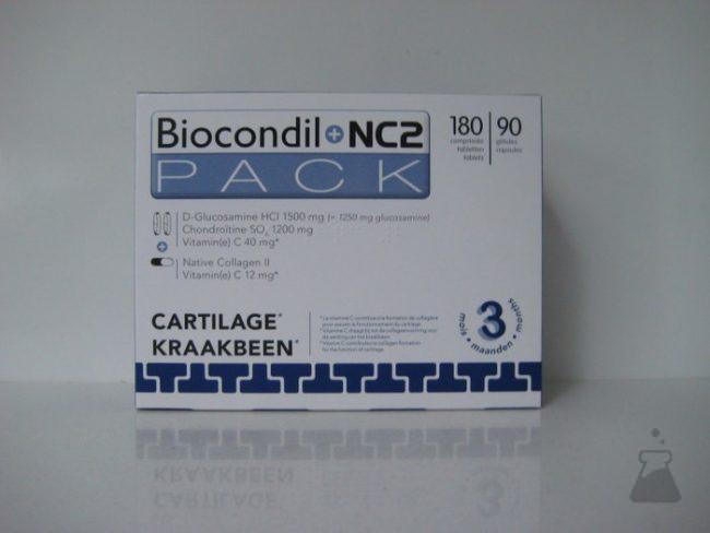 Bestanddelen per 2 biocondil filmtabletten : D-glucosaminehydrochloride 1500 mg (1250 mg glucosamine) en Chondroïtinesulfaat 1200 mg.